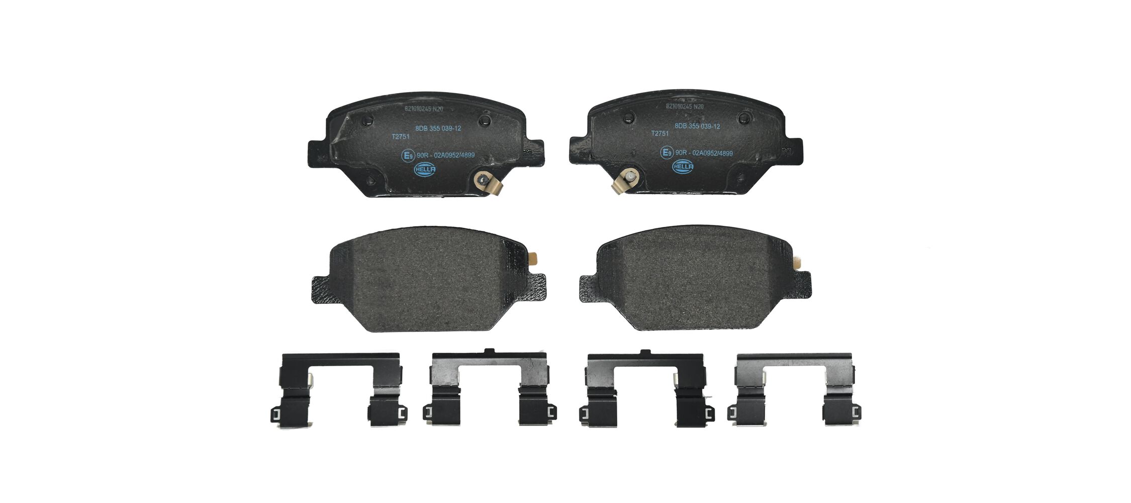 HELLA Bremsbelagsatz, Scheibenbremse vorne rechts links mit Zubehör für AMC OPEL P07007 T2751 82211780 8DB 355 039-121
