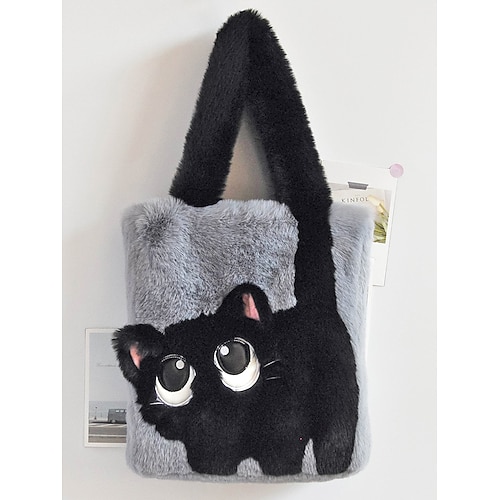 Borsa tote da donna in peluche con faccia di gatto, disponibile in più colori, materiale in morbida pelliccia, design carino e giocoso per uscite informali e regali