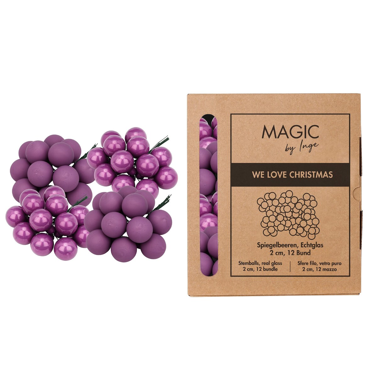 144 Weihnachtskugeln am Draht Glas 2cm Spiegelbeeren matt & glänzend kleine Dekokugeln Weihnachten Mini Christbaumschmuck Weihnachtsdeko Wild Mauve
