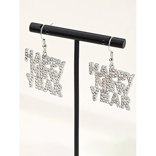 orecchini da donna in lega con scritta felice anno nuovo – strass scintillanti, vari colori, perfetti per feste e occasioni speciali