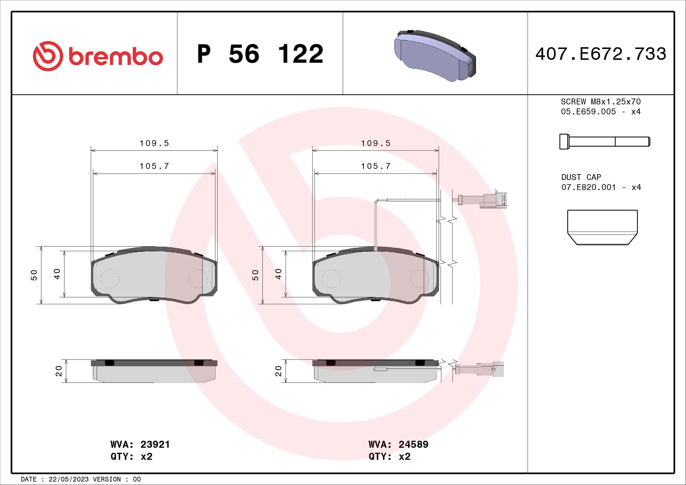 BREMBO Bremsbelagsatz, Scheibenbremse hinten rechts links mit Zubehör für RENAULT TRUCKS NISSAN 5001868608 D4060MA000 P 56 122