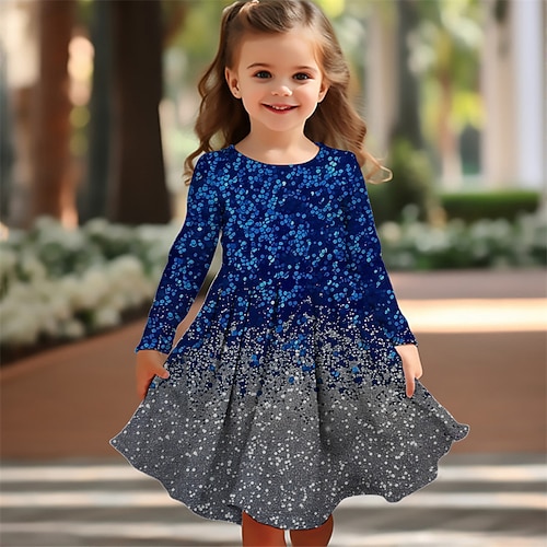 ragazze' 3D Cartoni animati Abito Manica Lunga Estate Primavera Vacanza Quotidiano Ferie Principessa Bello Dolce Bambini 4-12 Anni Vestito Casual Abito a trapezio Lunghezza al ginocchio Vestibilit