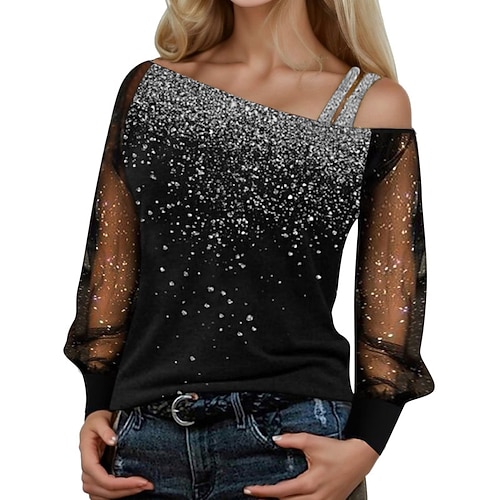 Per donna Blusa Ombre Vintage Elegante Manica Lunga Asimmetrico Top Regolari Quotidiano Ferie Uscire Glitter Blu Argento Vino Oro Estate Autunno