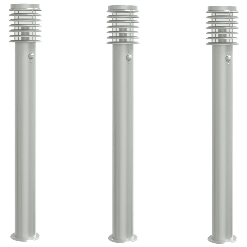 vidaXL Wegeleuchten mit Bewegungsmelder 3 Stk. Silbern 110cm Edelstahl