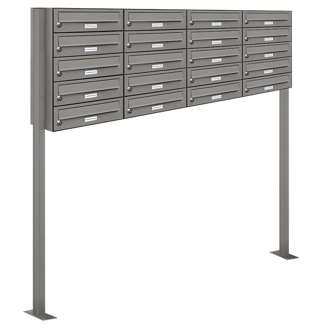 AL Briefkastensysteme 20 Fächer Premium Stand Briefkasten Anlage in RAL 9007 Aluminium Grau, Post A4, robust, wetterfest, Artikelnummer: 132P20S4P9007