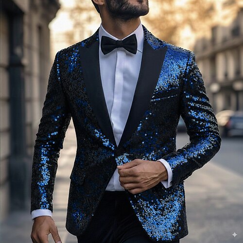 Per uomo Giacca blazer Colletto ad incastro Moda Disco Paillettes Motivo Blazer Nero Argento Fucsia Vestibilità su misura Monopetto Un Bottone