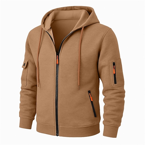 Per uomo Felpa con cappuccio Felpa con cappuccio a zip intera Felpa con cappuccio in pile Felpa con cappuccio tattica Nero Blu marino Cachi Grigio chiaro Grigio scuro Con Cappuccio Semplice Cerniera