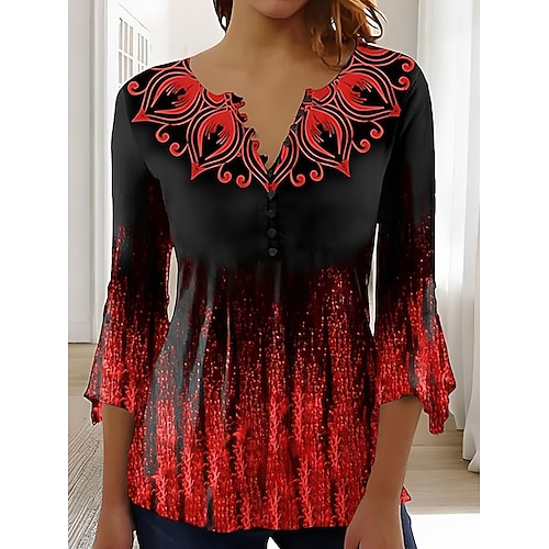 Per donna Blusa Ombre Floreale Grafico Elegante Vintage Manica 3/4 Scollo a V Top Regolari Quotidiano Uscire Bottoni Blu Rosa Rosso Verde Estate Primavera