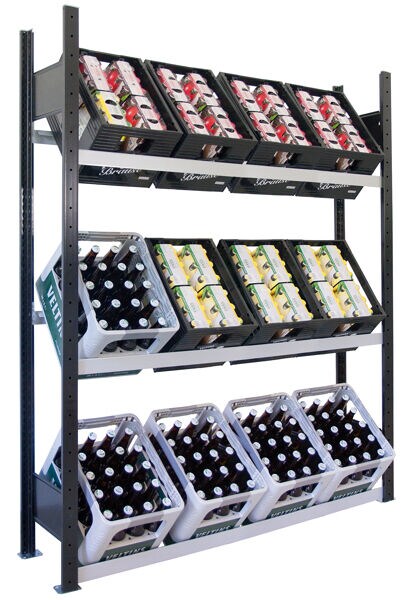 SCHULTE Lagertechnik Grundregal, Getränkekistenregal 1800 x 1.300 x 300 mm (HxBxT), schwarz/silber, 3 Ebenen für 12 Getränkekisten