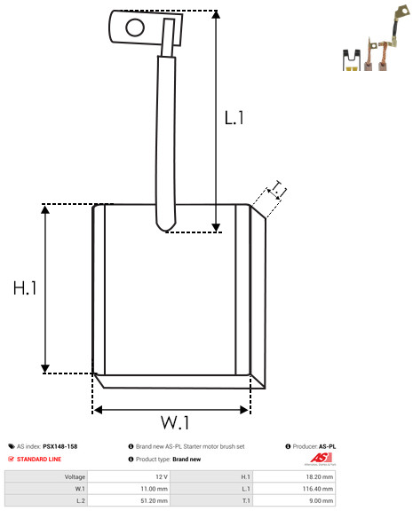 AS-PL Kohlebürste, Starter PSX148-158 Universal 12V