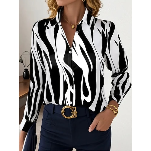 Per donna Camicia Grafico Geometrico Vintage Quotidiano Casual Manica Lunga Colletto a Camicia Top Regolari Quotidiano Ferie Stampato Nero Giallo Rosa Marrone chiaro Marrone Estate Primavera