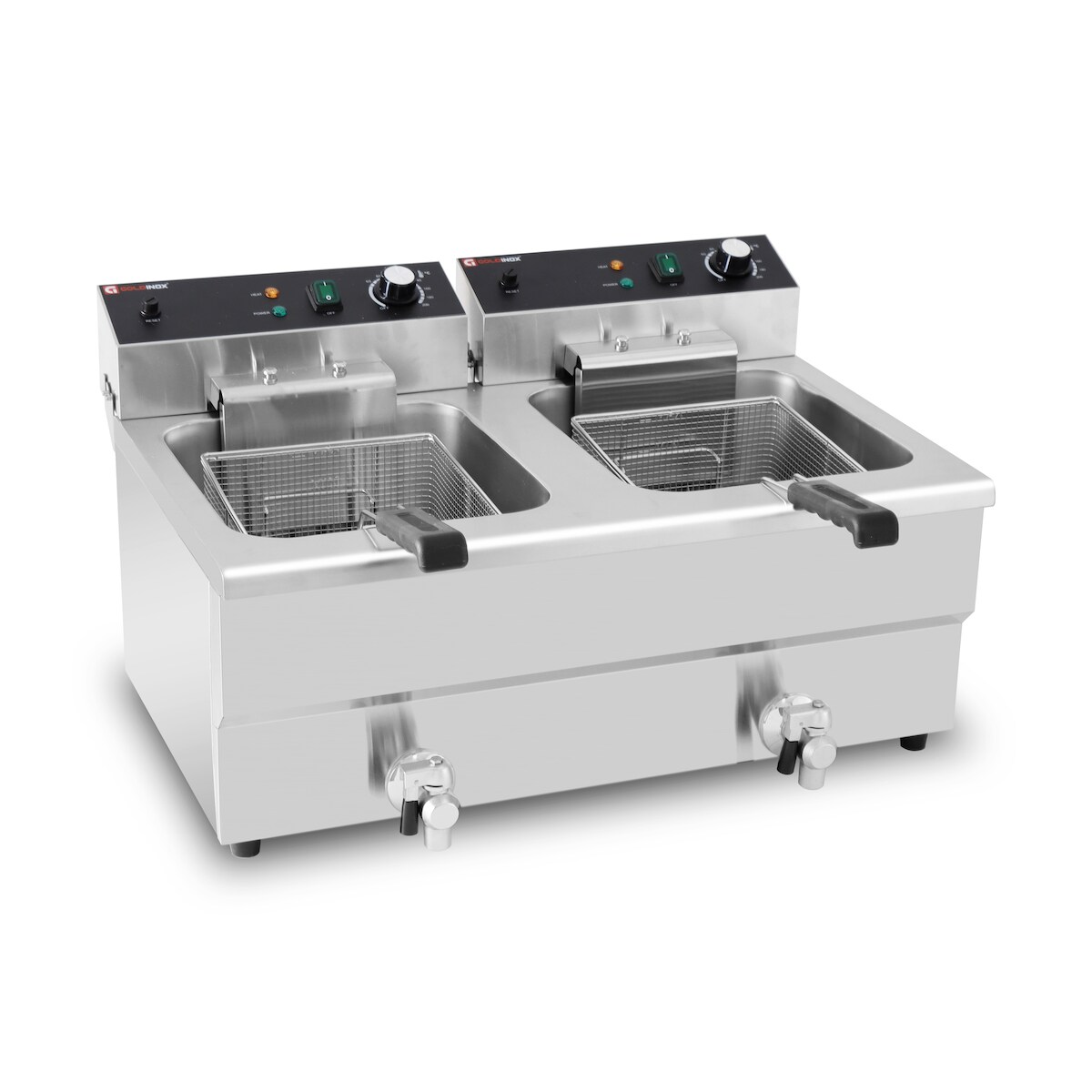 Professionelle elektrische Standfritteuse 16 + 16 Liter mit Ablasshahn (400V) IDEAL -. GOLDINOX