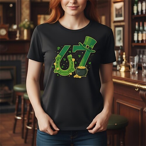 San Patrizio 2026 67 Trifoglio Irlandese fortunato Carnevale T-shirt Cosplay Adulti Per donna Giorno di San Patrizio Casuale Feste Costume di Carnevale facile Vestirsi