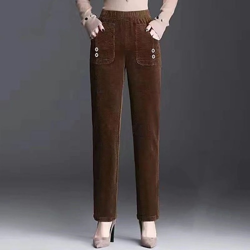 Per donna Pantaloni in velluto a coste Chinos Dritto Vacanza Streetwear Casual Lunghezza intera Vita media Semplice Tasca Elastico in vita Confortevole Micro-elastico All'aperto Vacanza Quotidiano