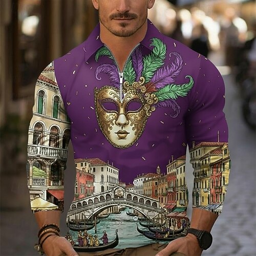 Per uomo Grafico Polo con zip Maglia da golf Manica Lunga Magliette polo Camicie con Colletto Casual Abbigliamento da vacanza Abbigliamento da rave Abiti da festa Stampa 3D Polo con cerniera a un
