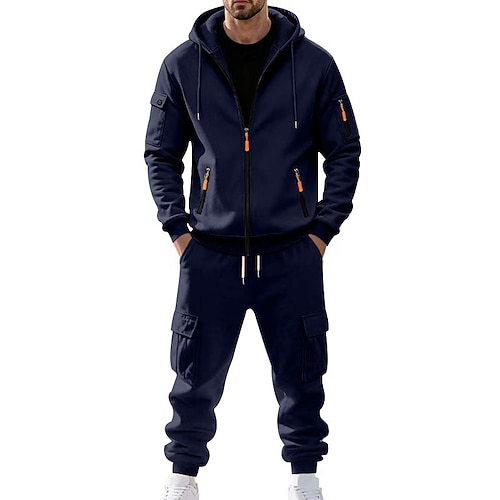Per uomo Felpa con cappuccio Tuta da Ginnastica Felpa con cappuccio e pantaloni Impostato Felpa con Cappuccio Quotidiano All'aperto Vacanza Abbigliamento quotidiano Coulisse Con zip Semplice Nero Blu