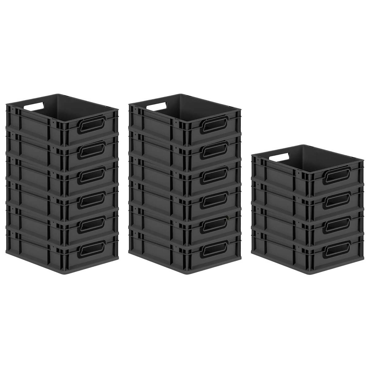 PROREGAL SuperSparSet 5x Eurobox NextGen Grip mit Scharnierdeckel & gelben Verschlüssen, HxBxT 12x30x40cm, 11L, Schwarz, Griffe offen, Eurobehälter
