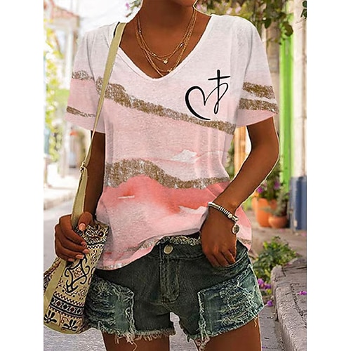 Per donna Maglietta Ombre Grafico Vintage Elegante Classico Manica Corta Scollo a V Top Regolari Quotidiano Stampato Rosa Estate Primavera Autunno Inverno
