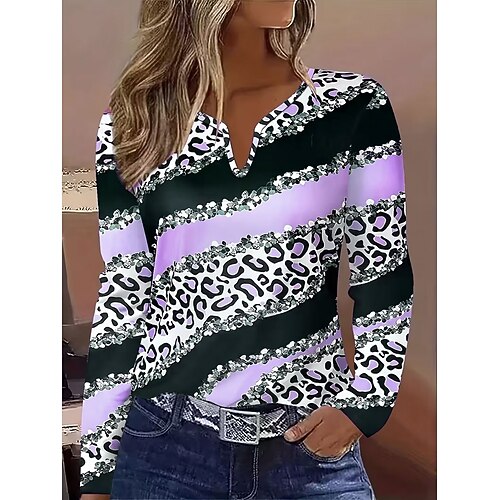 Per donna Maglietta Grafico Geometrico Vintage Elegante Classico Manica Lunga Scollo a V Collo a V Top Regolari Quotidiano Stampato Rosa Viola Arancione Verde Primavera Autunno