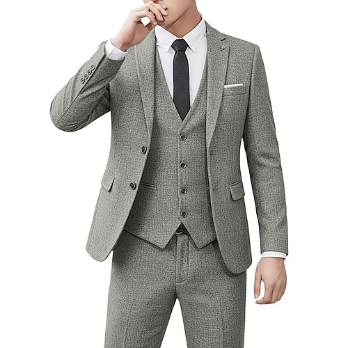 Uomo Affari Casuale Completi in Tweed Bavero classico Nero Borgogna Affari Formale Tinta unita Vestibilità su misura 2 pezzi Monopetto Due Bottoni