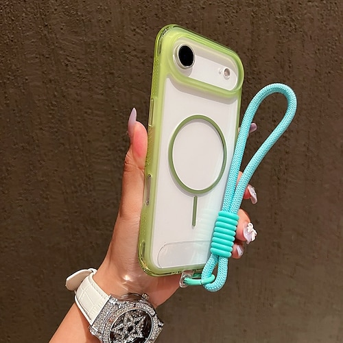 telefono Custodia Per iPhone 17 Pro Max 17 Air 16 15 14 Pro Max Plus 13 Pro Max Copertura Posteriore con Cordino Supporta la Ricarica Wireless Non Ingiallente Retrò TPU Acrilico