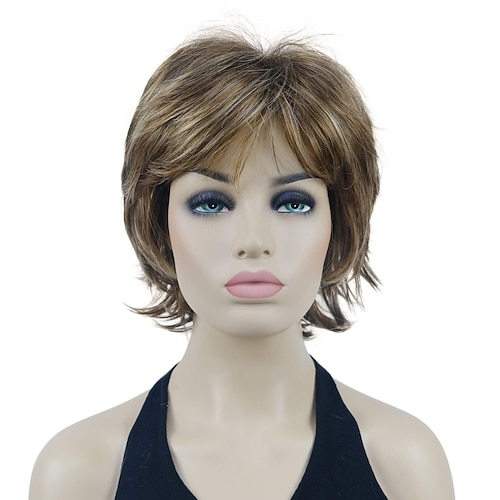 parrucca karen capelli corti a strati lunghi parrucca completamente sintetica 12tt26 riflessi marroni