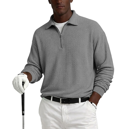 Per uomo Magliette Polo a Nido d'Ape Testurizzato Casuale Zip a un quarto Manica Lunga Moda Moderno Tinta unica Semplice Lavorato a maglia Primavera Primavera Autunno Tutte le stagioni Vestibilit