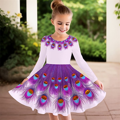 ragazze' 3D Piume Abito Manica Lunga Estate Primavera Vacanza Quotidiano Ferie Principessa Bello Dolce Bambini 4-12 Anni Vestito Casual Abito a trapezio Lunghezza al ginocchio Vestibilità regolare