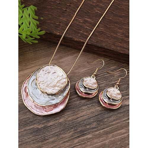 set di collana con ciondolo a strati e orecchini pendenti in stile bohémien da donna: design a conchiglia iridescente, gioielli particolari per outfit casual e da festa
