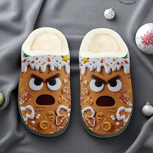 pantofole natalizie da uomo con motivo a omino di pan di zenzero - calzature festive da interno con design a omino di pan di zenzero, morbida fodera in pile, perfette per le calde notti invernali e come regalo per le feste