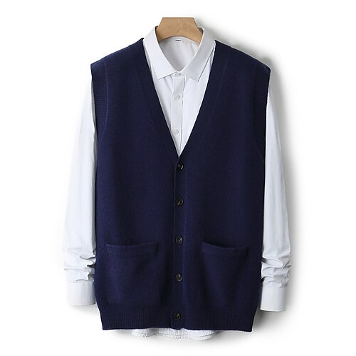 maglione cardigan da uomo in pura lana e cashmere di alta qualità, scollo a V, classico, lavorato a maglia, con tasche e bottoni, tinta unita, morbido, caldo e traspirante.