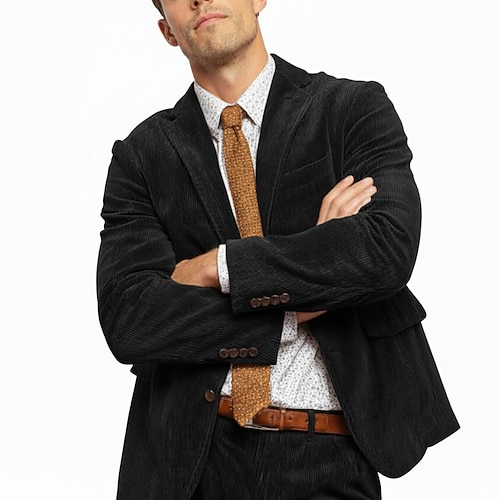 Uomo Affari Casuale Abito di velluto Bavero classico Nero Giallo Quotidiano Affari Tinta unita Vestibilità su misura 2 pezzi Monopetto Due Bottoni
