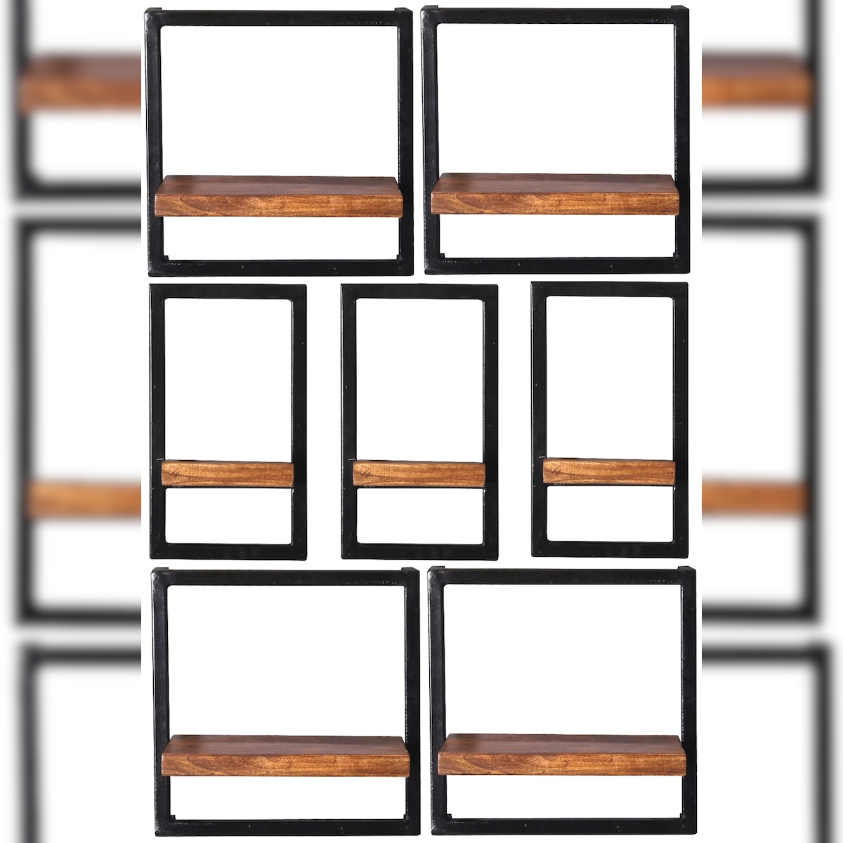 SIT Möbel Wandregal-Set | 7-teilig | Mangoholz mit Altmetall | Serie PANAMA | B 75 x T 25 x H 115 cm | natur
