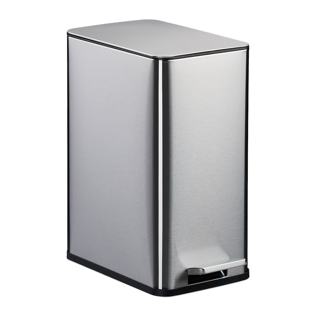 Relaxdays Kosmetikeimer, 10 Liter, Absenkautomatik, entnehmbarer Inneneimer, Bad Mülleimer mit Deckel, Badeimer, silber