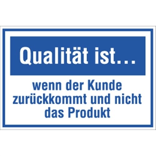 Schild Qualität ist ... wenn der Kunde zurückkommt ..., Kunststoff, 300x200 mm