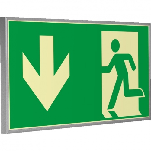 Schild | PERMALIGHT power langnachleuchtend Rettungszeichen Notausgang, Rahmen silber, ISO, Kunststoff, 300x150mm