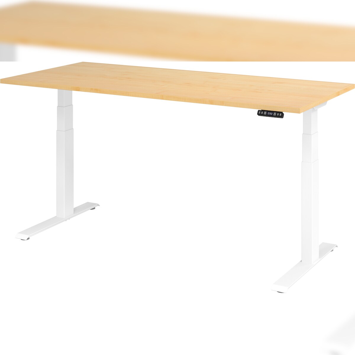 bümö elektrisch höhenverstellbarer Schreibtisch 180x80 cm in Ahorn, Gestell weiß mit Memory-Steuerung, elektrischer Bürotisch höhenverstellbar Gaming