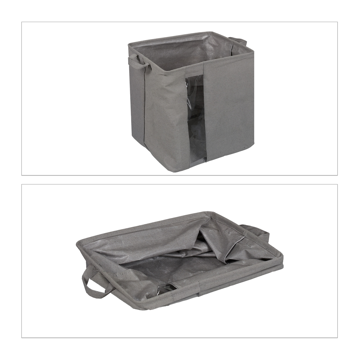 Relaxdays Aufbewahrungskorb aus Stoff, mit Sichtfenster & 2 Griffen, HBT: 39 x 40 x 33 cm, faltbarer Stoffkorb, grau