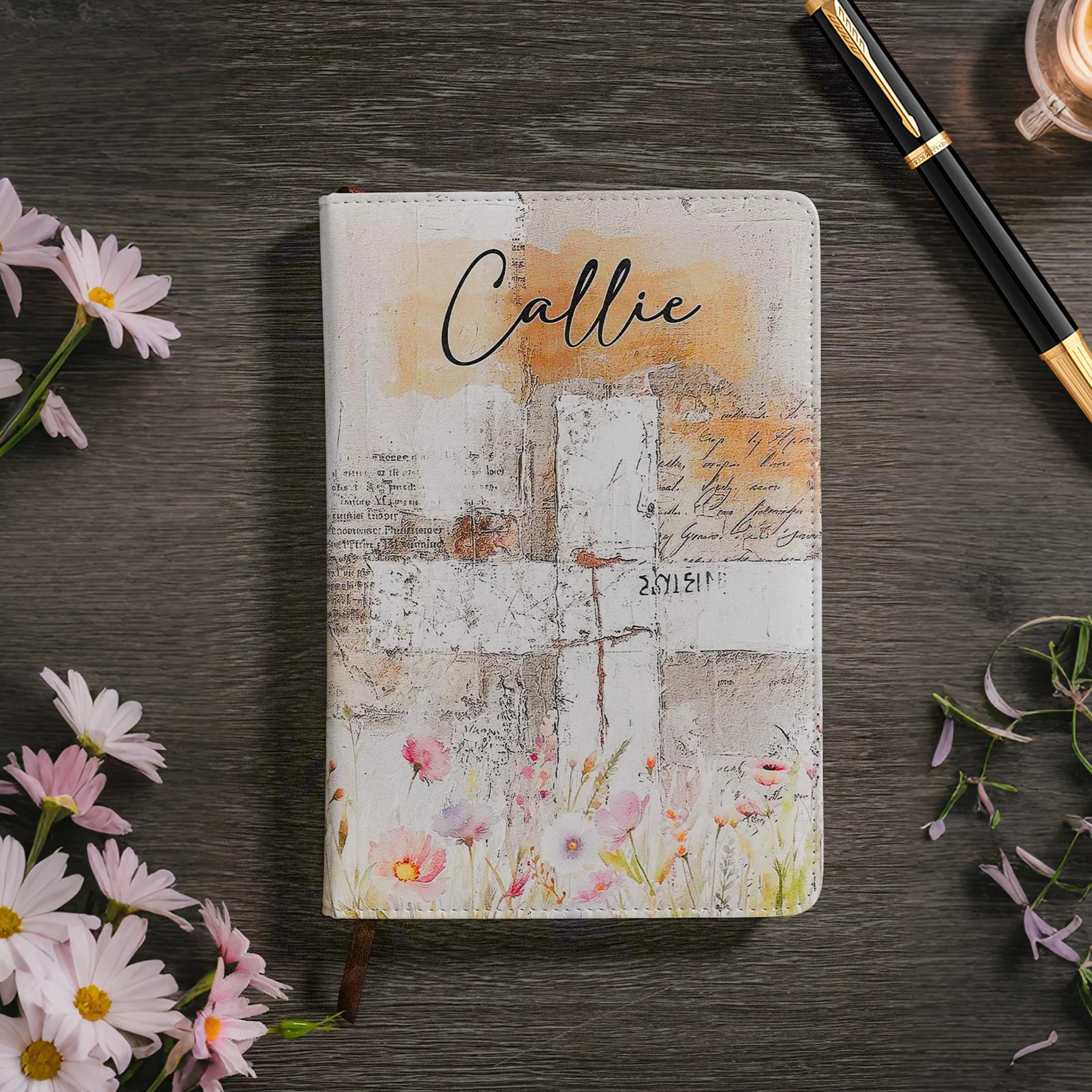 Taccuino personalizzato in pelle di chiesa con nome e 100 righe per il regalo religioso di compleanno per donne cristiane.