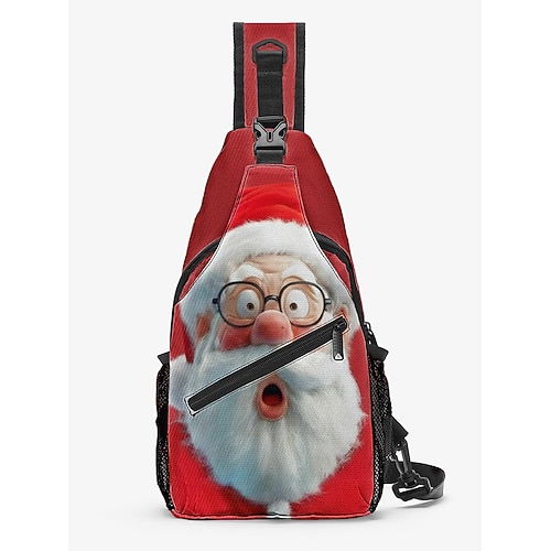 Borsa a tracolla unisex natalizia con Babbo Natale, borsa a tracolla festiva con stampa di cartoni animati, zaino da viaggio leggero come regalo per le feste e per l'uso quotidiano