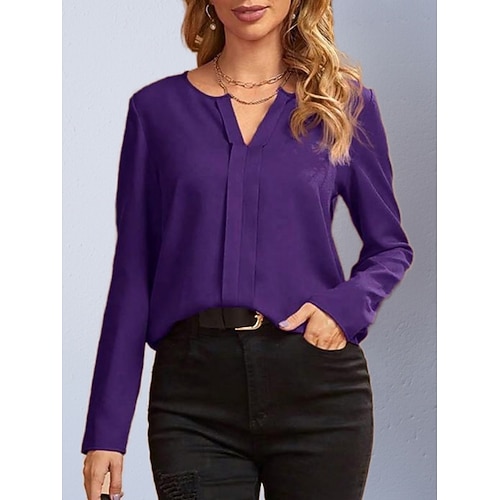 Per donna Camicia popover Camicia elegante Blusa Arricciato Tinta unica Elegante Vintage Essenziale Manica Lunga Scollo a V Top Regolari Quotidiano All'aperto Abbigliamento casual alla moda Blu Nero
