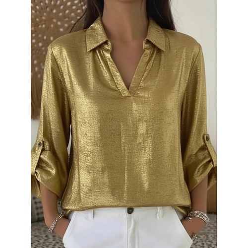 Per donna Camicia Camicia casual Semplice Vintage Elegante Classico Manica Lunga Scollo a V Top Regolari Quotidiano Ferie Uscire Nero Bianco Rosso Oro Primavera Autunno