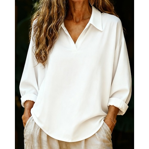 Per donna Camicia Camicia popover Camicia Estiva Camicia casual Semplice Vacanza Elegante Classico Manica Lunga Collo ripiegato Scollo a V Top Regolari Quotidiano Spiaggia Ferie Blu Bianco Giallo