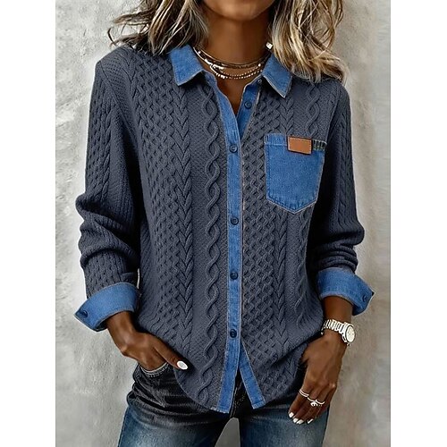 Per donna Camicia Bottoni Geometrico Quotidiano Elegante Essenziale Manica Lunga Colletto a Camicia Top Regolari Quotidiano Lavoro Ferie Nero Bianco Cachi Primavera Autunno