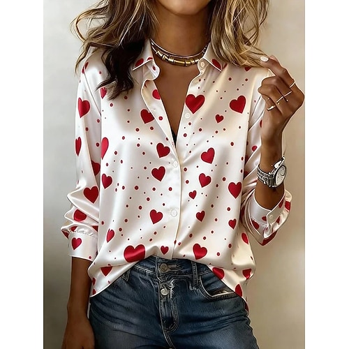 Per donna Camicia Bottoni Stampato Cuore Grafico Elegante Moderno Casual Manica Lunga Colletto a Camicia Top Regolari Quotidiano Lavoro Bianco Giallo Rosso Estate Primavera