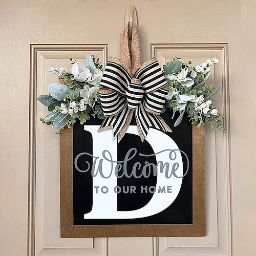 Targa per porta con 26 lettere dell'alfabeto, decorazione personalizzata per porta d'ingresso, ornamento artigianale in legno da appendere, espositore per ingresso di casa, targa per porta