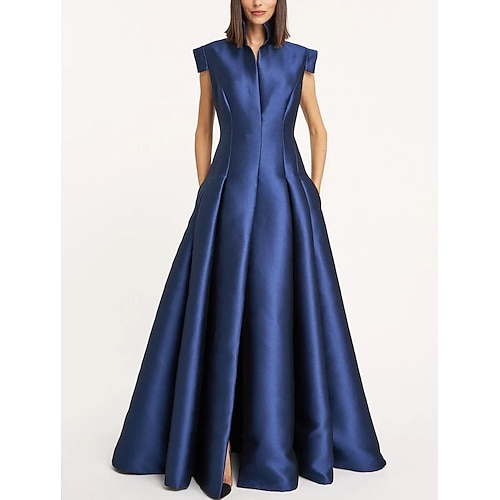 Linea ad A Lunghezza al pavimento Abito da Sera Da principessa Abito formale Elegante Manica Corta Regina Anna Matrimonio Formale Tasca Raso con Tasca