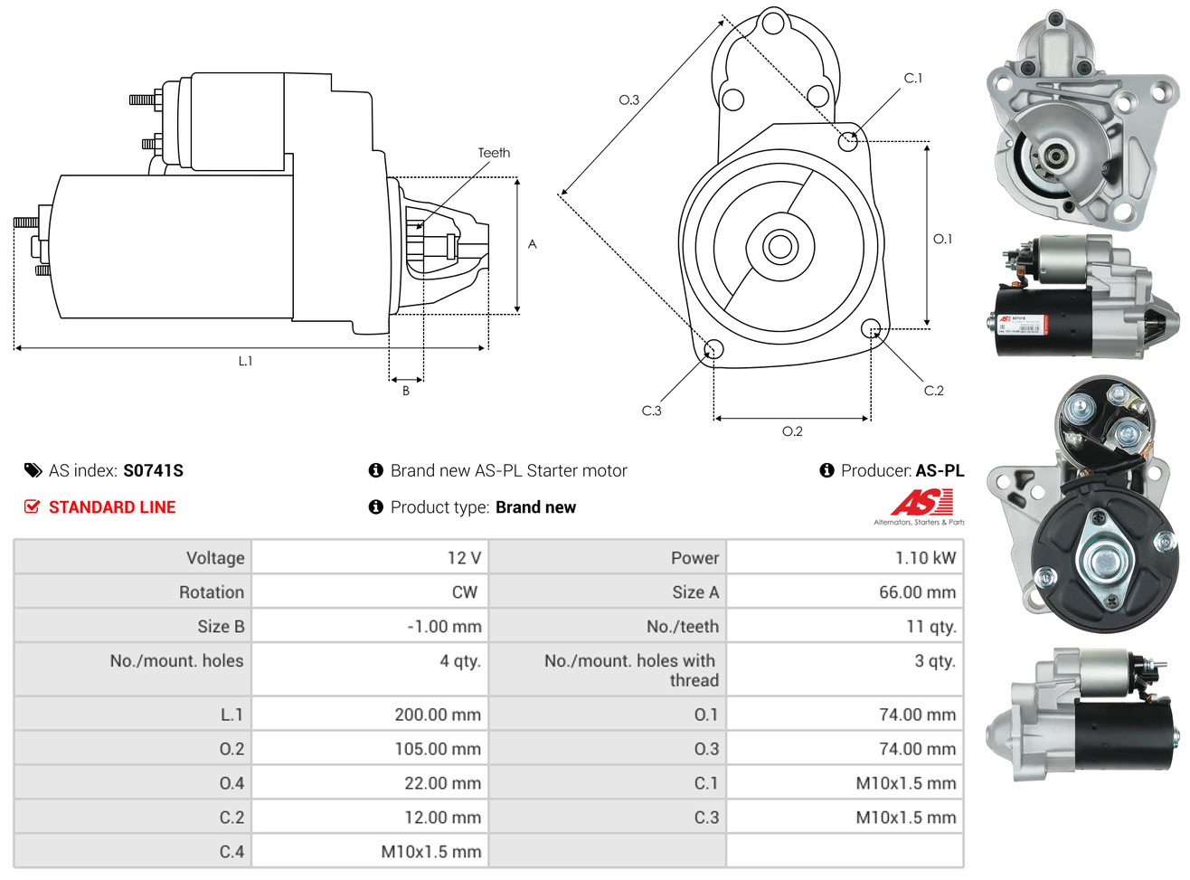 AS-PL Starter 12V für MITSUBISHI NISSAN 23300VM00ARE 23300-VK50A M2T50571 S5036