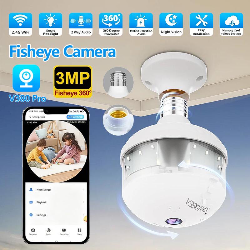 V380 E27 Panorama-Fischaugen-Glühbirnenkamera: Kabelloses WiFi, Intelligente 360°-Sicherheitsüberwachung, Keine toten Winkel.