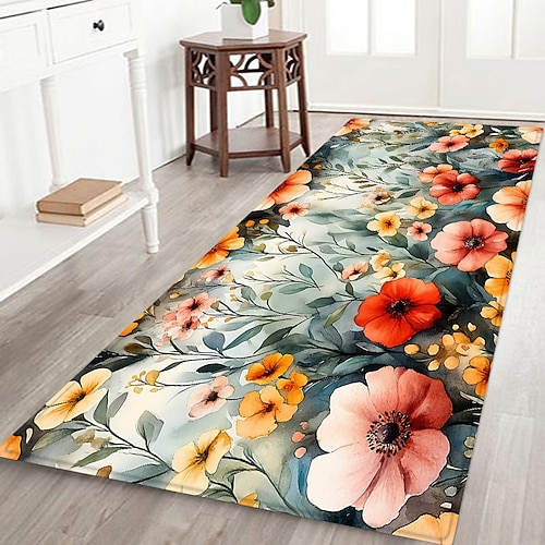 tappeto decorativo antiscivolo morbido in flanella con motivo a foglie e fiori, per ingresso casa, porta, bagno